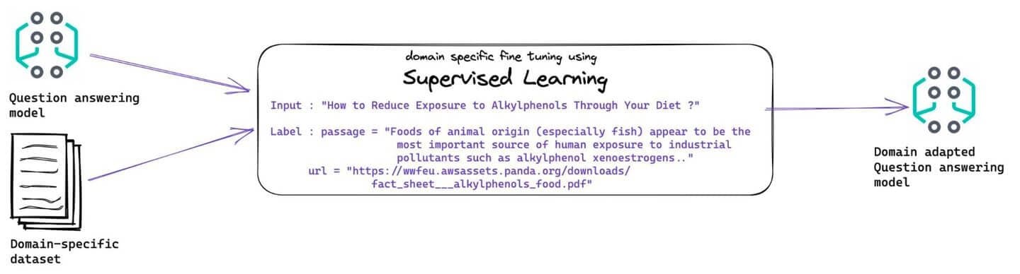Depending on how different your data is from the data set used for task-specific training, you might need to train your model using a domain specific labeled data set. This step is also referred to as fine tuning for domain adaptation or domain-adaptation.