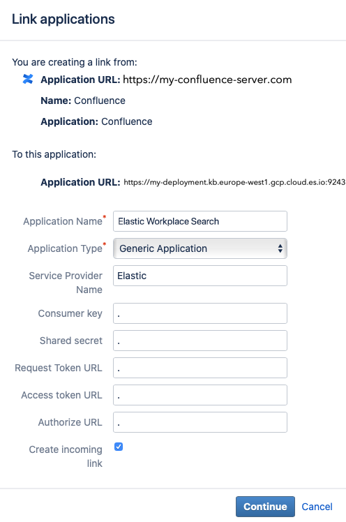 Step 1. From the Workplace Search administrative dashboard’s Sources area, locate Confluence Server and click Configure. You are presented with a Public Key and a Consumer Key. Copy these keys and keep them handy, as we’ll need them in just a second.
