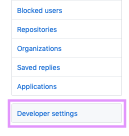 Step 2. From here, you’ll see a set of menu items on the left under Personal Settings. Click Developer Settings: