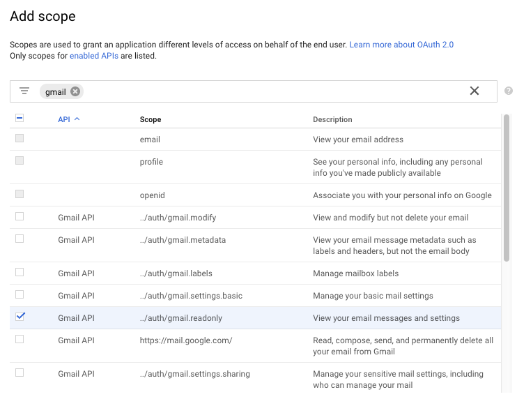 editConfiguring the Gmail connector is the first step prior to connecting the Gmail service to Workplace Search, and requires that you create an OAuth App from the Gmail platform.