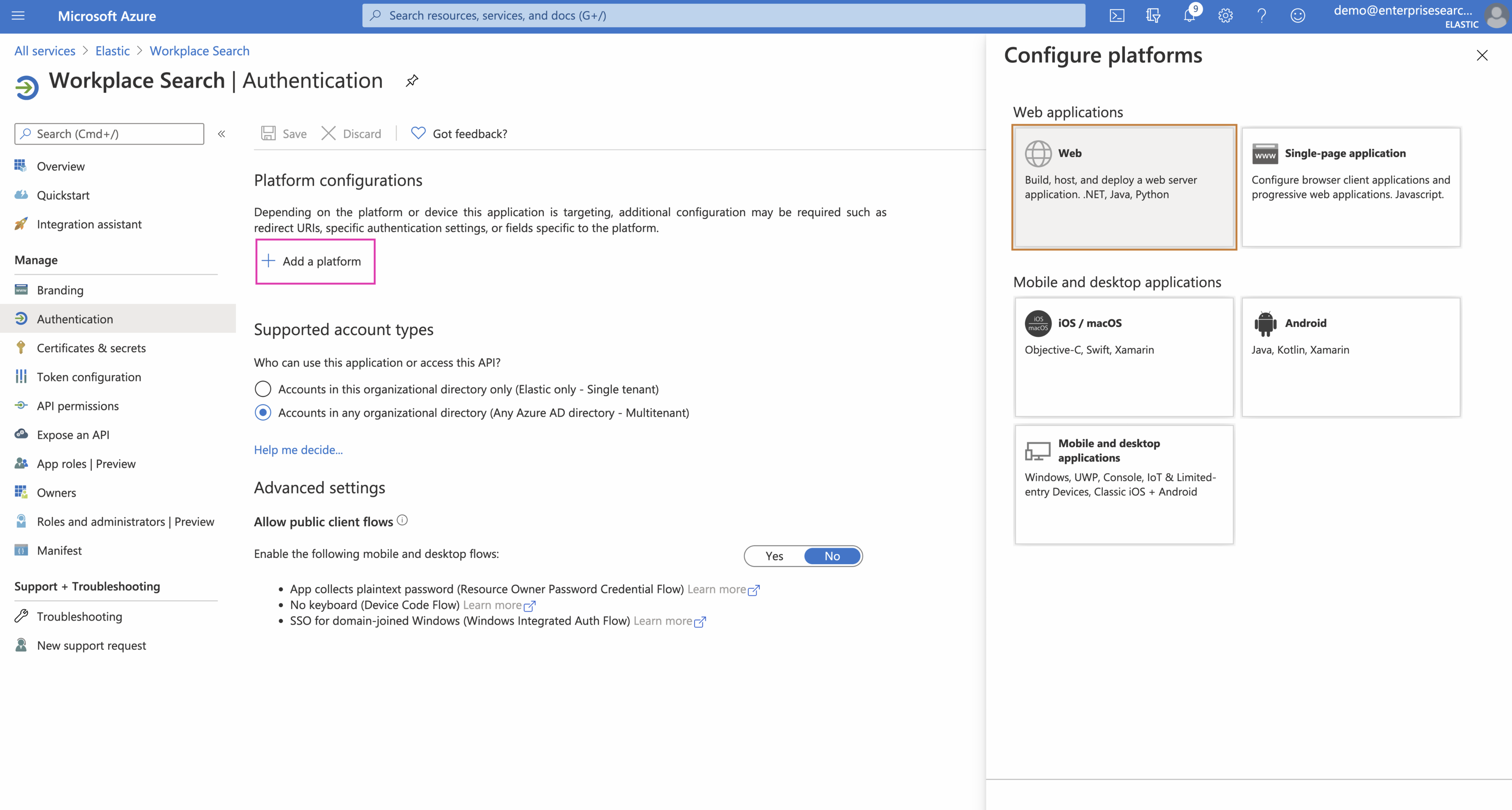 Give your app a name - like "Workplace Search", make it multitenant and click Register.
