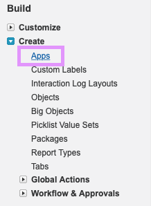 Step 2. You’ll see a large list of menu items. Under Build, expand the Create dropdown, then click Apps: