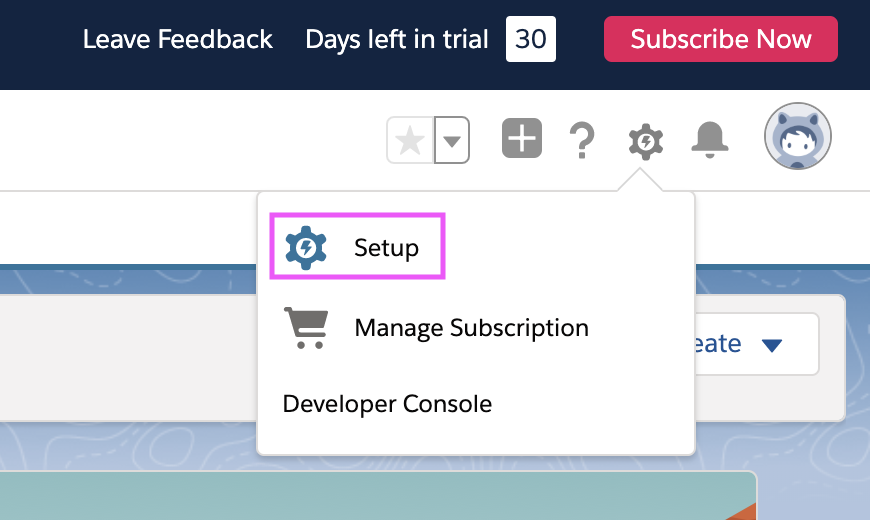 editStep 1. From the Lightning experience, click Setup in the top right corner: