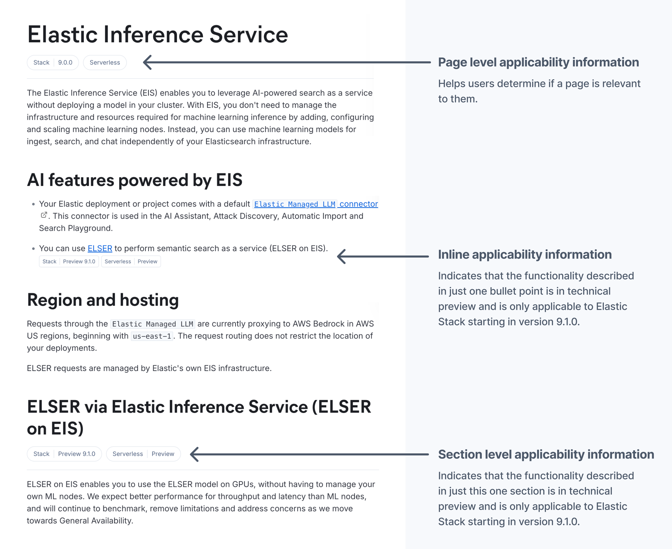This new behavior starts with the following versions of our products: Elastic Stack 9.0, ECE 4.0, ECK 3.0, and even more like EDOT docs. It also includes our unversioned products: Serverless and Elastic Cloud.