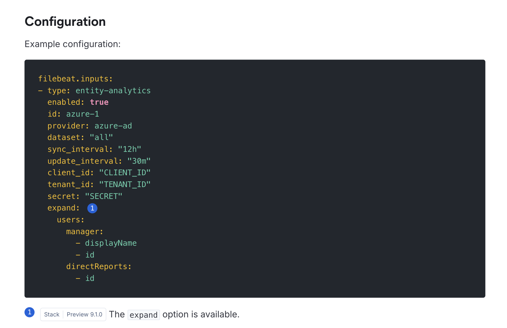 Example: On the Entity Analytics page, we added a new option to a code block that was only made available in 9.1.0.