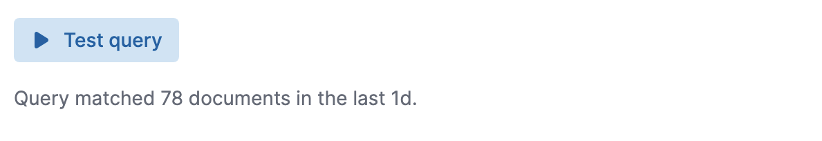 If you use query DSL, KQL, or Lucene, the query runs against the selected indices using the configured time window. The number of documents that match the query is displayed. For example: