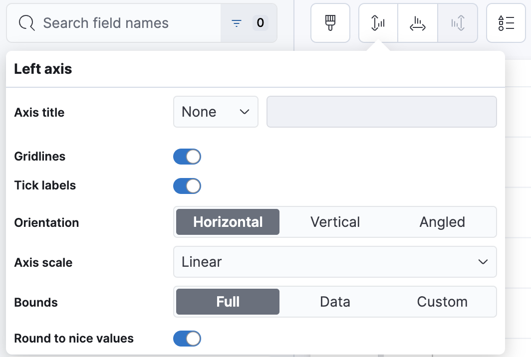 1. Open the Left axis menu, then select None from the Axis title dropdown.