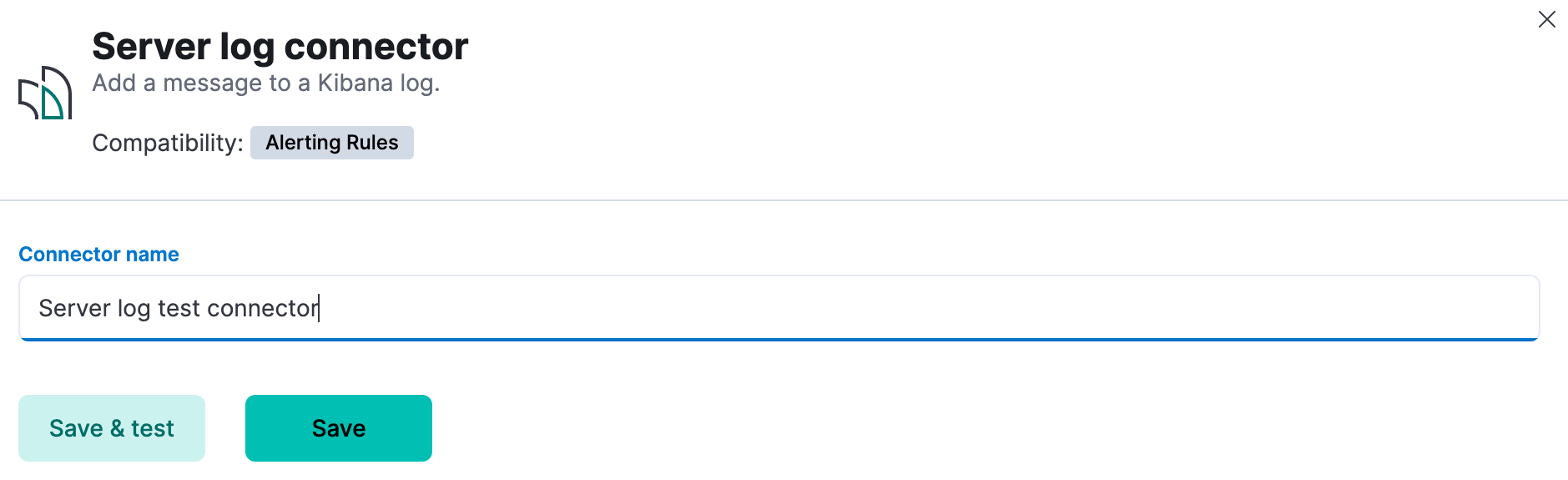 A server log connector writes an entry to the Kibana server log.
