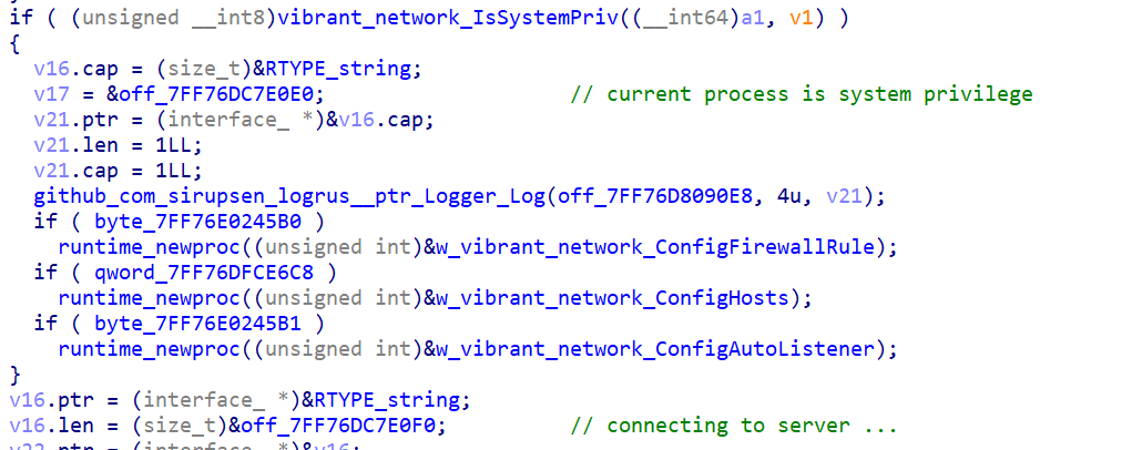 El malware verifica la membresía del grupo del token del proceso actual para determinar su nivel de privilegio. Verifica si el proceso pertenece a la cuenta LocalSystem inicializando un SID con SECURITY_LOCAL_SYSTEM_RID y llamando CheckTokenMembership. En caso contrario, intenta verificar la membresía en el grupo Administradores creando un SID usando SECURITY_BUILTIN_DOMAIN_RID y DOMAIN_ALIAS_RID_ADMINS y realizando una verificación de membresía de token similar.