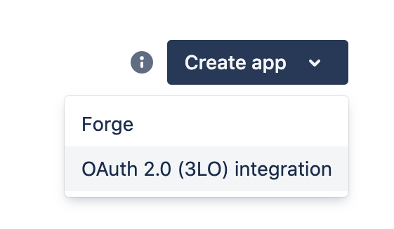 Step 1. Click Create app, then select OAuth 2.0 (3LO) integration: