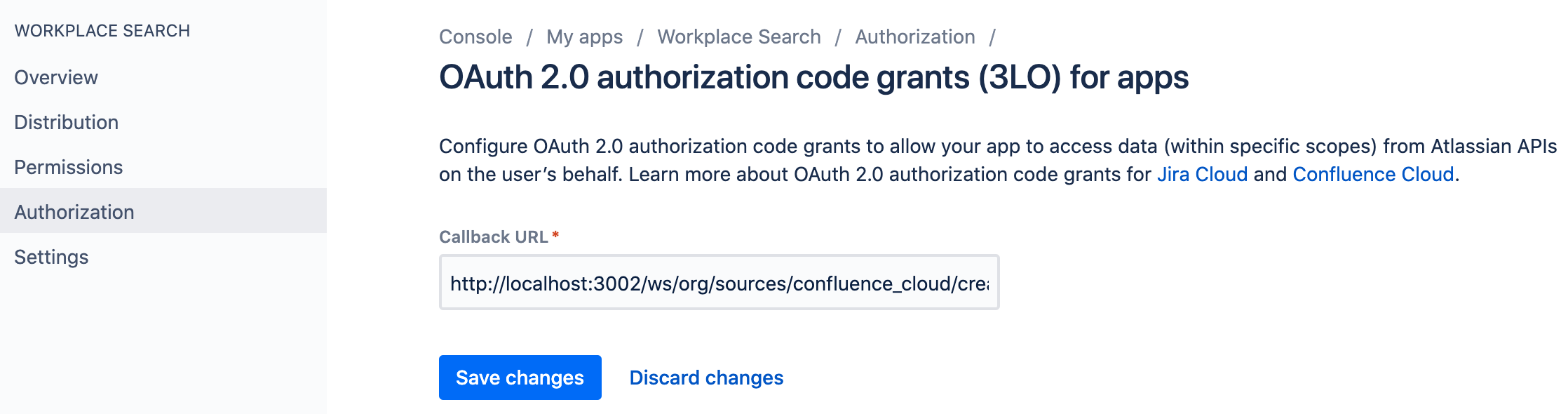 For standalone Enterprise Search, you will use one of the following two callback URLs, substituting <WS_BASE_URL> with the base URL at which Workplace Search is hosted (scheme + host, no path).