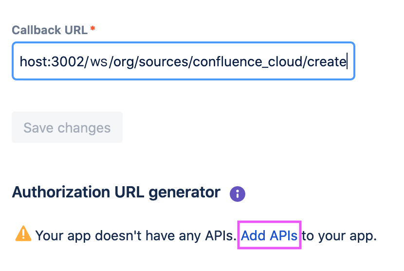 Step 8. Click Permissions, find Confluence API and click Add, then Configure: