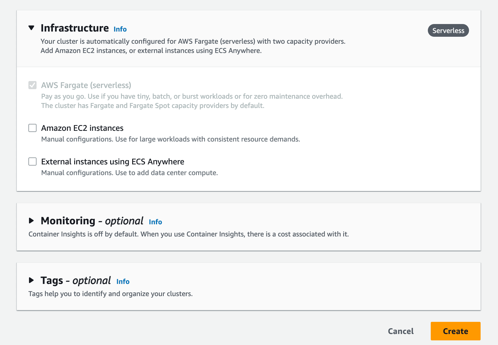 It’s time to create our ECS Cluster, Service, and task definition in order to start running the container.