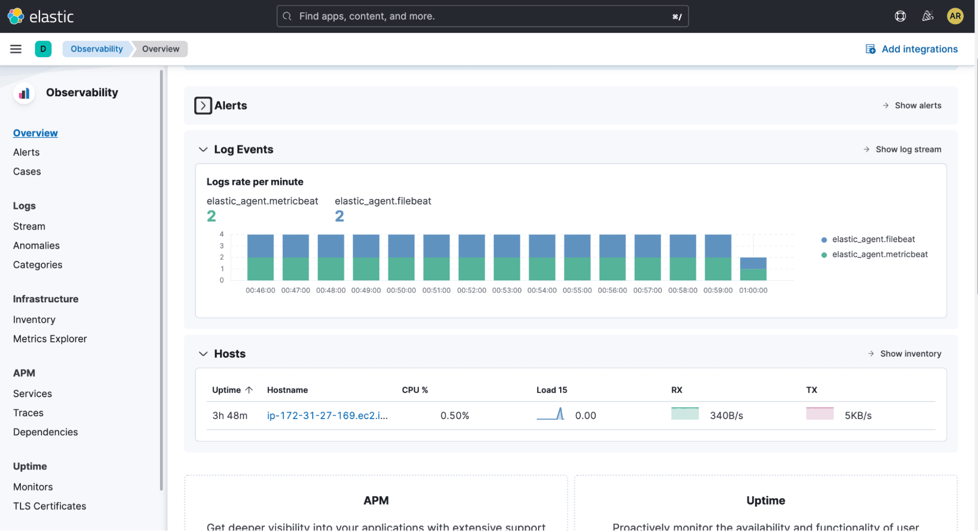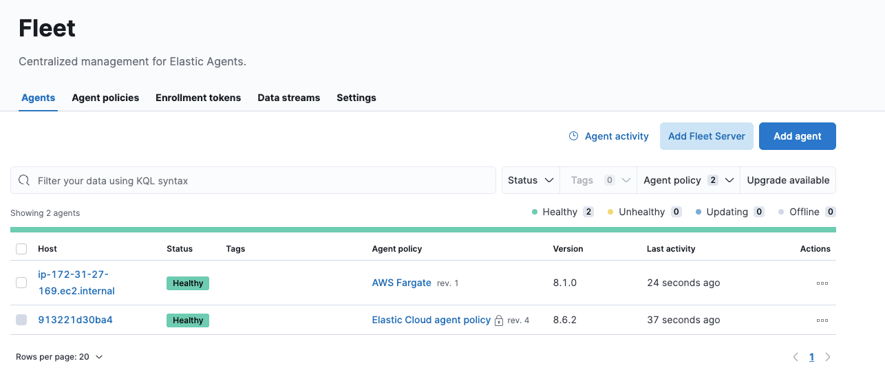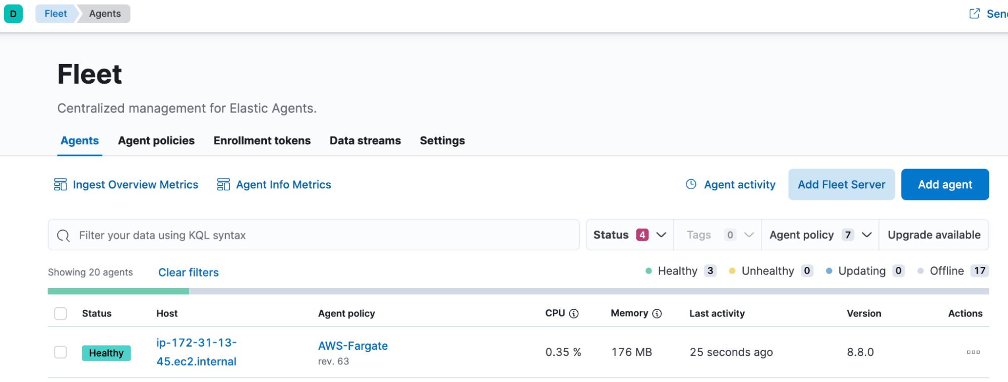 Now let’s verify our Elastic Agent is healthy and properly receiving data from AWS Fargate.
