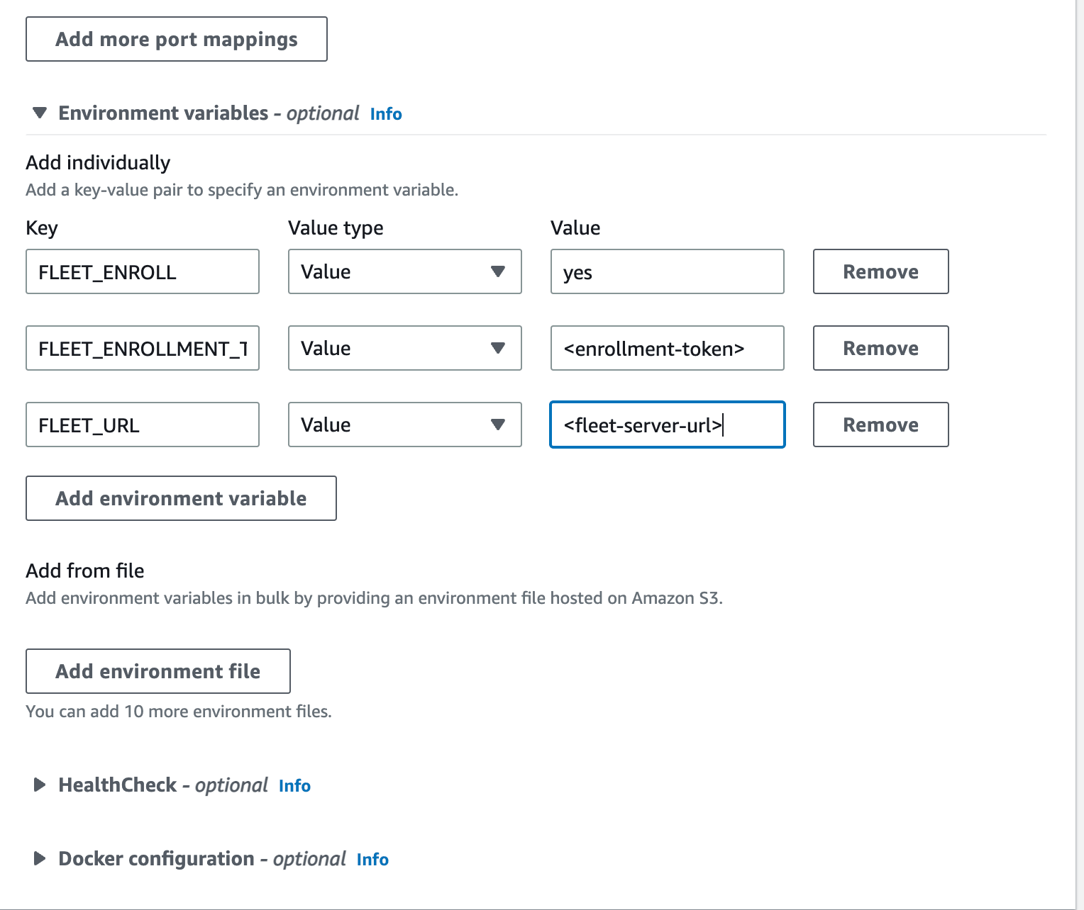 - Set up the Fleet server to be used by the sidecar container in AWS.