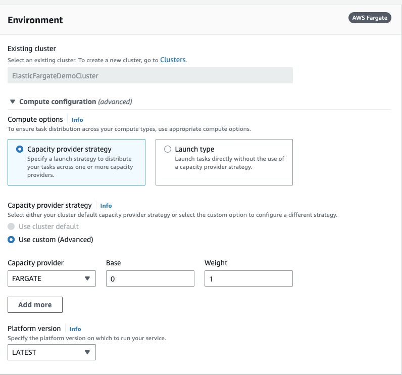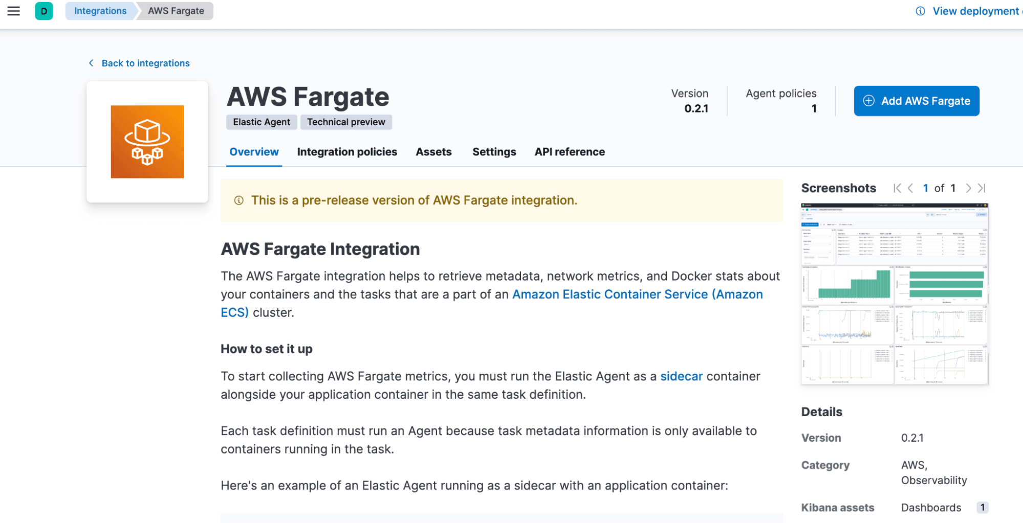Next, we will add the AWS Fargate integration, which doesn’t require further configuration settings.