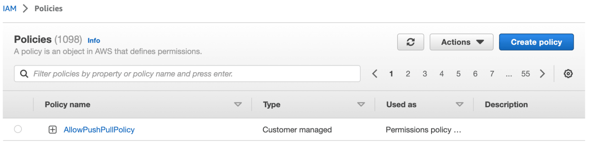 Under permissions policies, select the policy we just created, as well as CloudWatchLogsFullAccess and AmazonEC2ContainerRegistryFullAccess. Click Next.