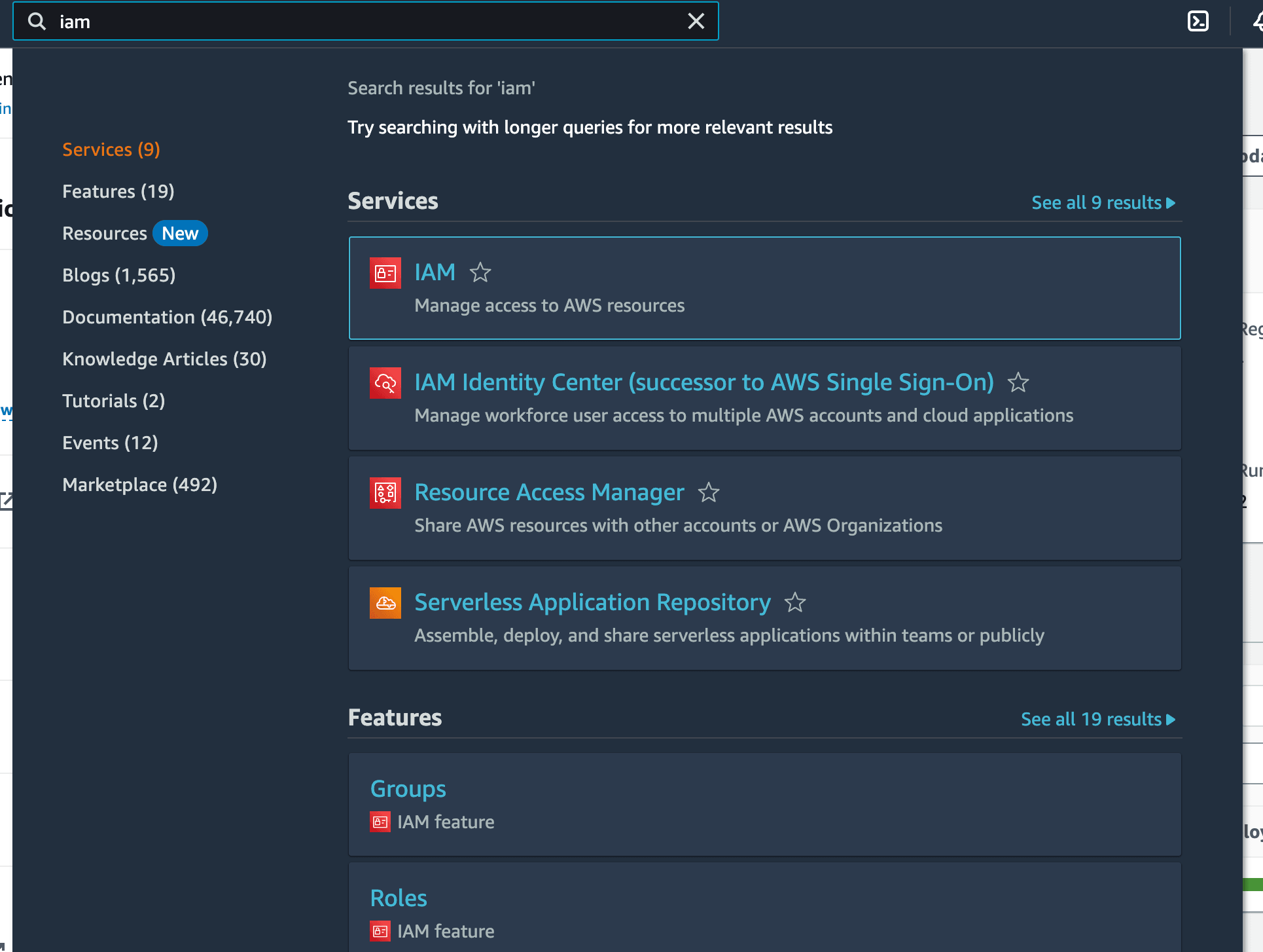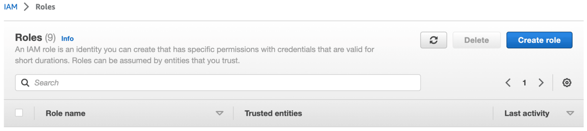 Now let’s attach this policy to a role. Navigate to IAM -> Roles. Click Create role.