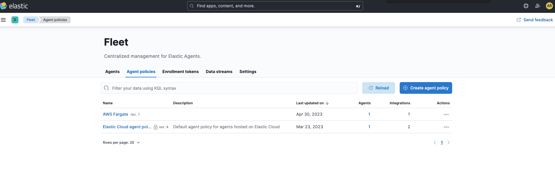 Click Create agent policy. You should see the agent policy AWS Fargate in the list of policies.