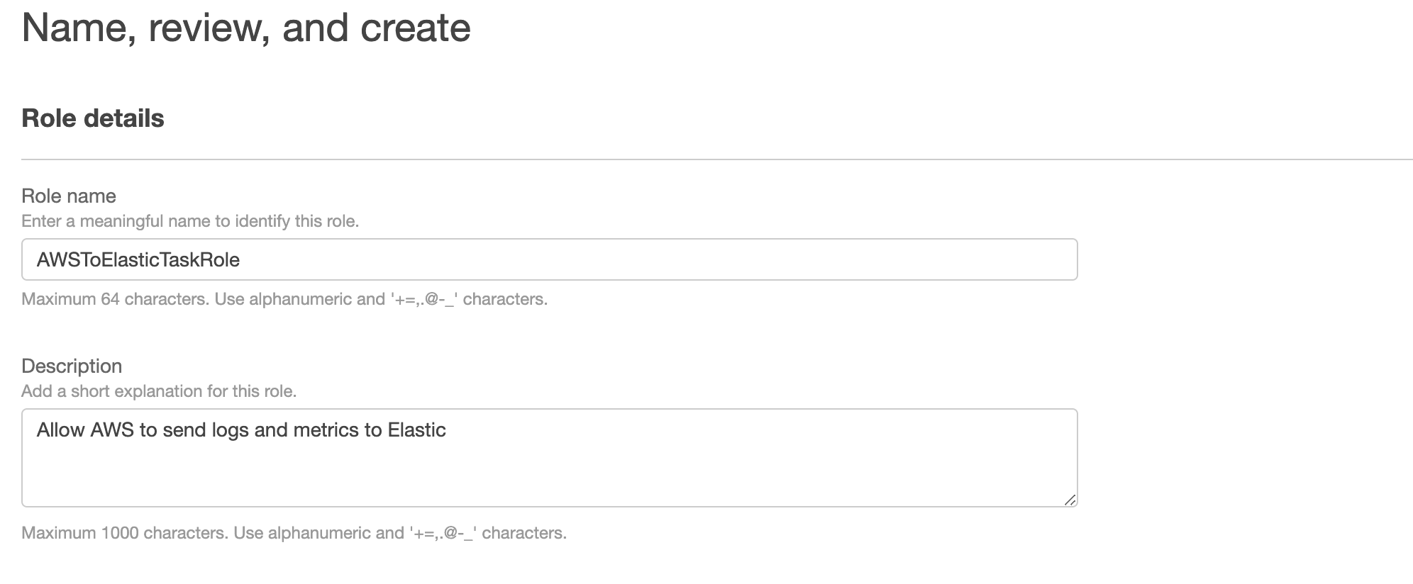 Now that we’ve created our cluster to host our container, we want to create a task definition that will be used to set up our container. But before we do this, we will need to create a task role with an associated policy. This task role will allow for AWS metrics to be sent from AWS to the Elastic Agent.