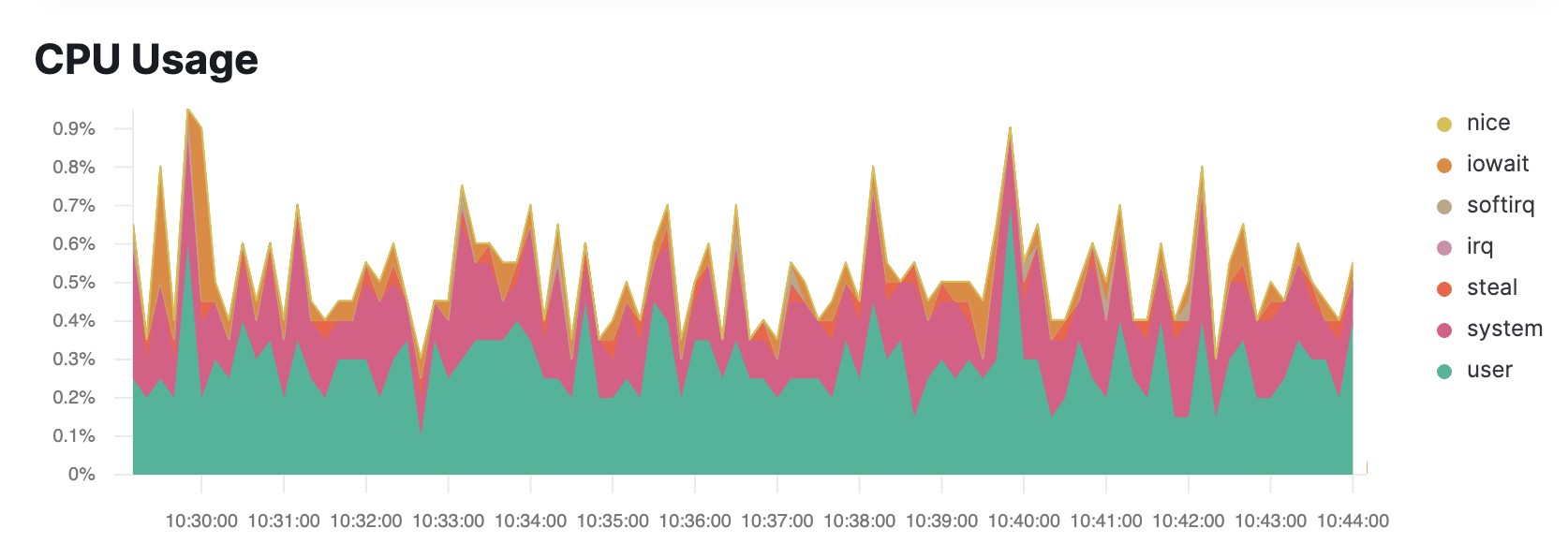 If we drill down to hosts, by clicking on host name we should be able to see more granular data. For instance, we can see the CPU Usage of the Elastic Agent itself that is deployed in our AWS Fargate environment.