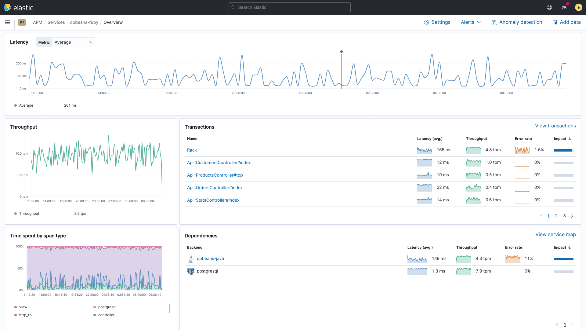 Now that you've got your Elastic Observability cluster up and running and collecting out-of-the-box application trace data, explore the public APIs for the languages that your applications are using, which allow you to take your APM data to the next level. The APIs allow you to add custom metadata, define business transactions, create custom spans, and more. You can find the public API specs for the various APM agents (such as Java, Ruby, Python, and more) on the APM agent documentation pages.