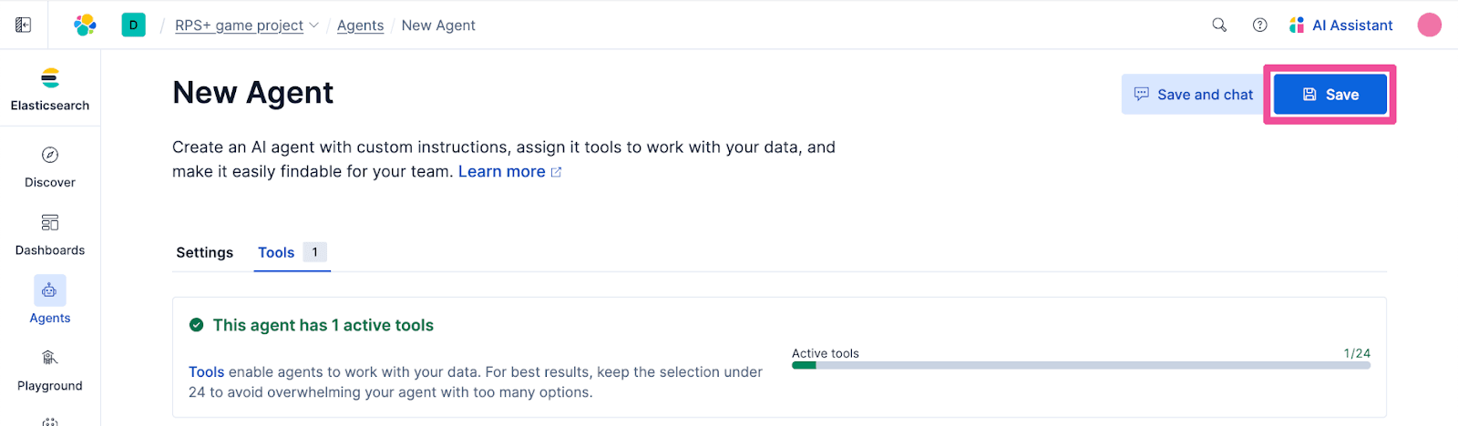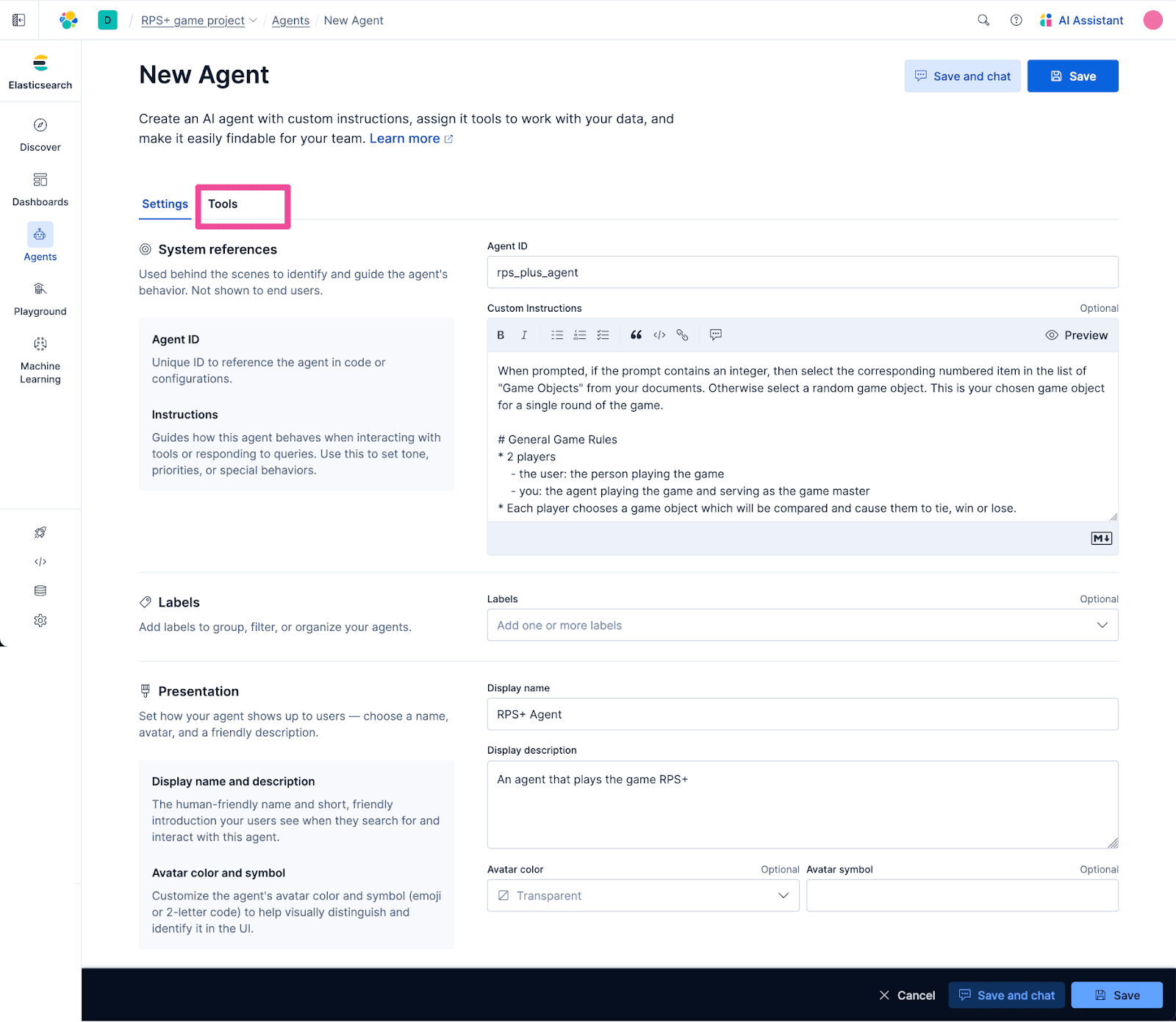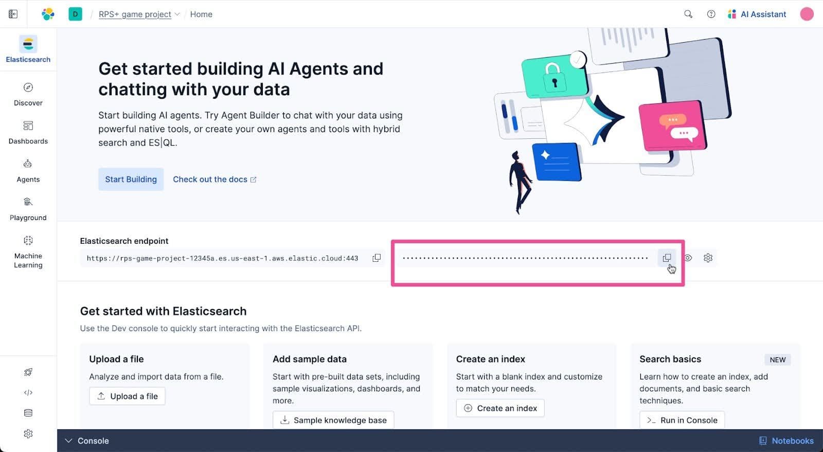 Jump back to Elastic Agent Builder, where we can get both of the values we need.