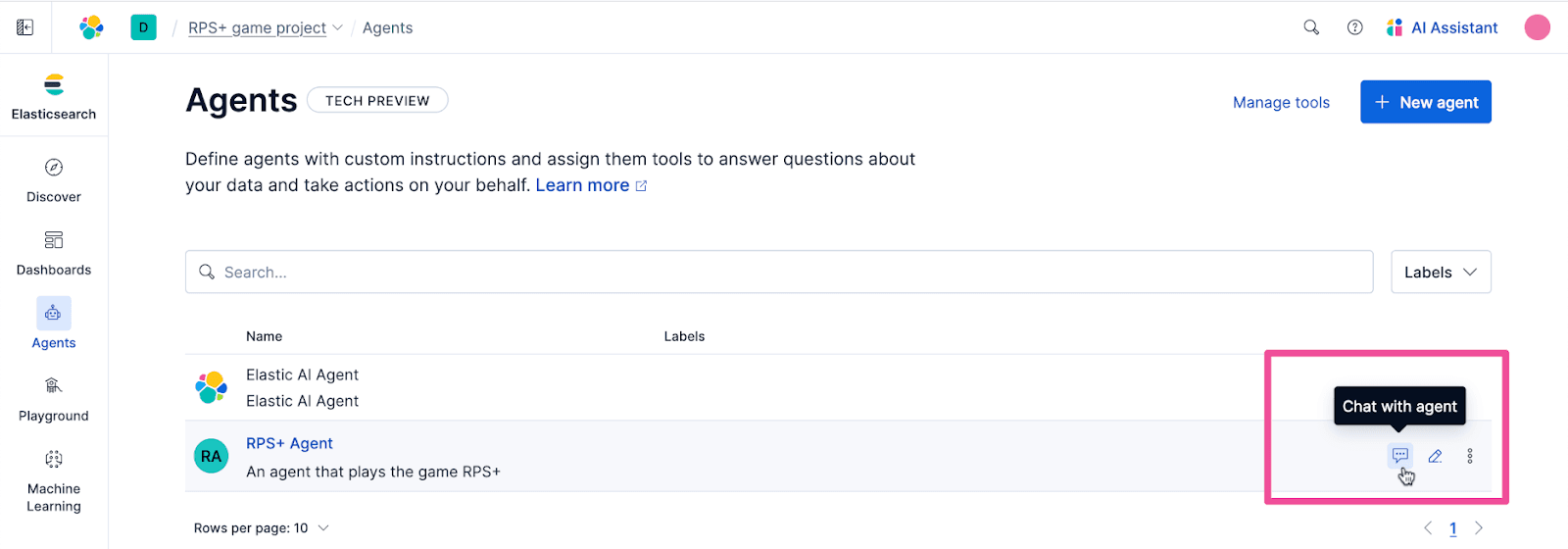 Let’s test out our new agent. There’s a handy link to start a chat with any agent from the list of agents.