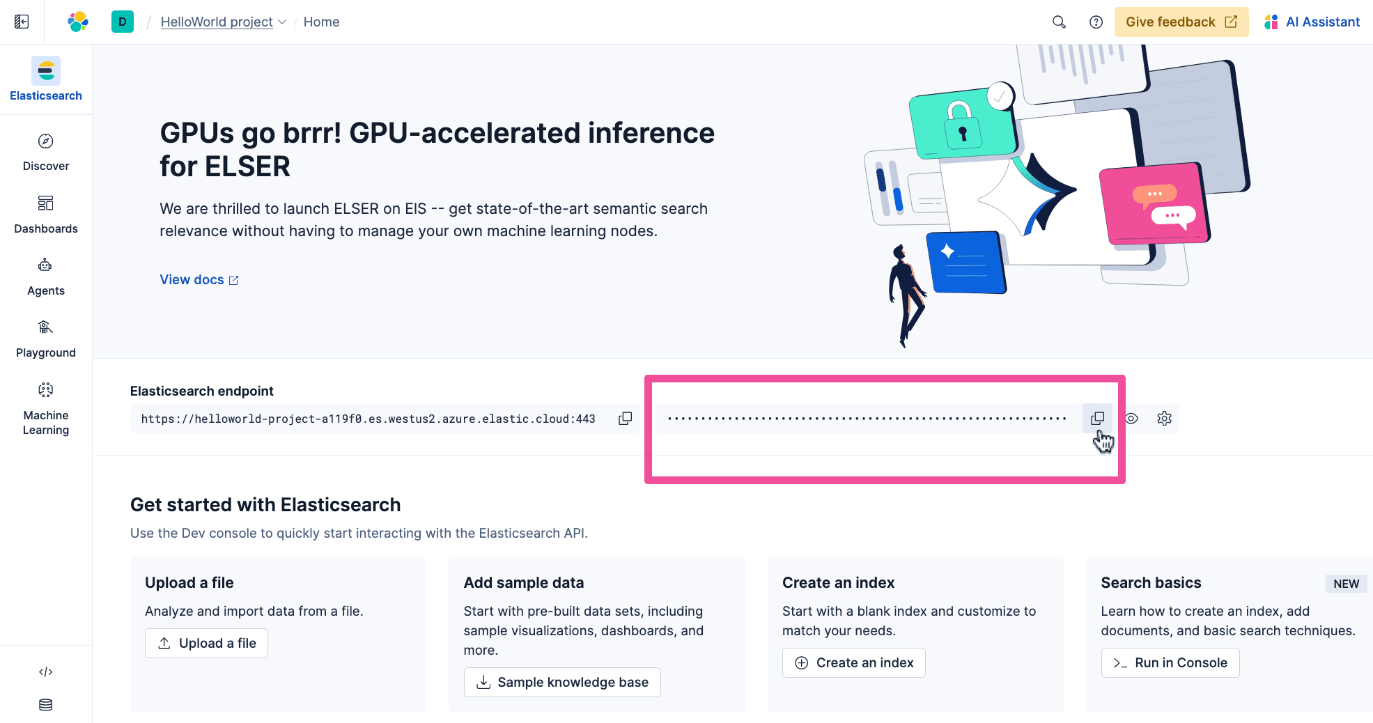 The next step on this walkthrough journey is to create an agent that can utilize the data stored in Elastic.