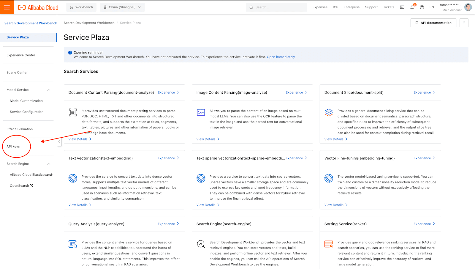 We need a valid API Key to integrate Alibaba with Elasticsearch. To get it, follow these steps: