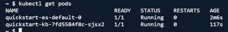 11. You can also run kubectl get elasticsearch and kubectl get kibana for more specific stats like Elasticsearch version, nodes, and health.