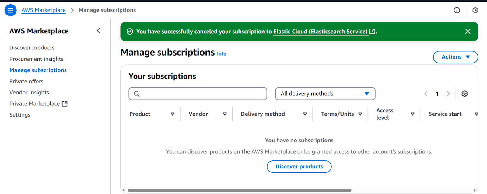 2. In the left navigation panel, click on Discover products, then search for Elasticsearch