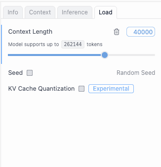 - On the right panel, go to Load and set the Context Length to 40K or higher