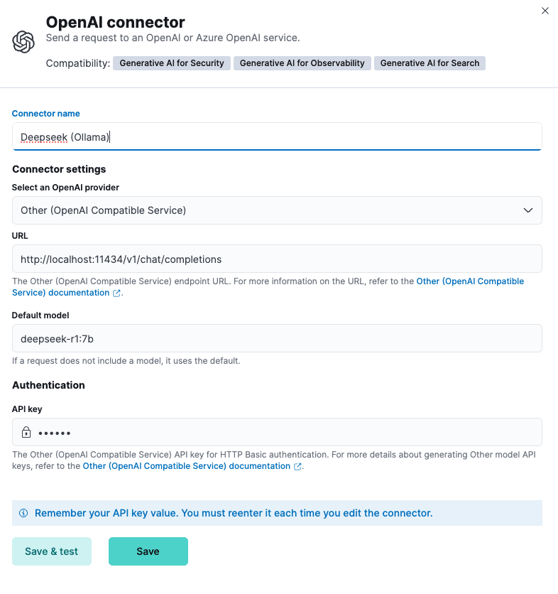 Conveniently, Ollama also serves a REST endpoint that mimics the behavior of OpenAI for compatibility with a wide range of tools including Kibana.
