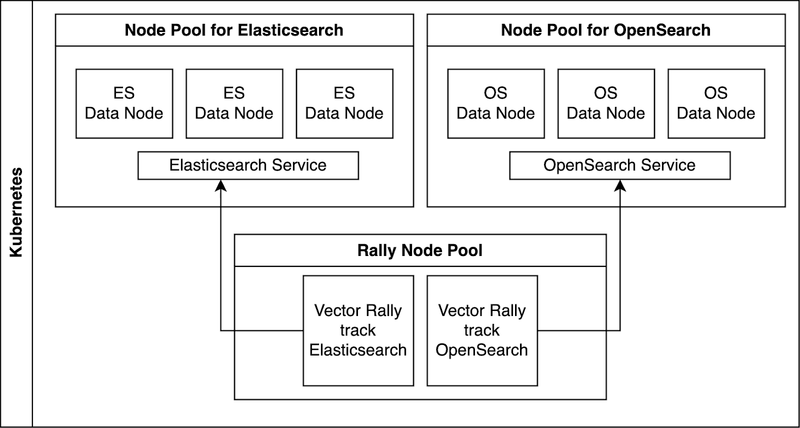 We set up one Elasticsearch cluster version 9.0 and one OpenSearch cluster version 2.19.