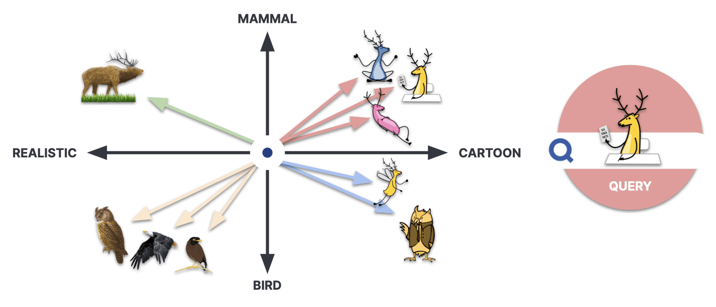 This allows vector search to locate data that shares similar concepts or contexts by using distances in the "embedding space" to represent similarity given a query vector. When the data is similar, the corresponding vectors will be alike.
