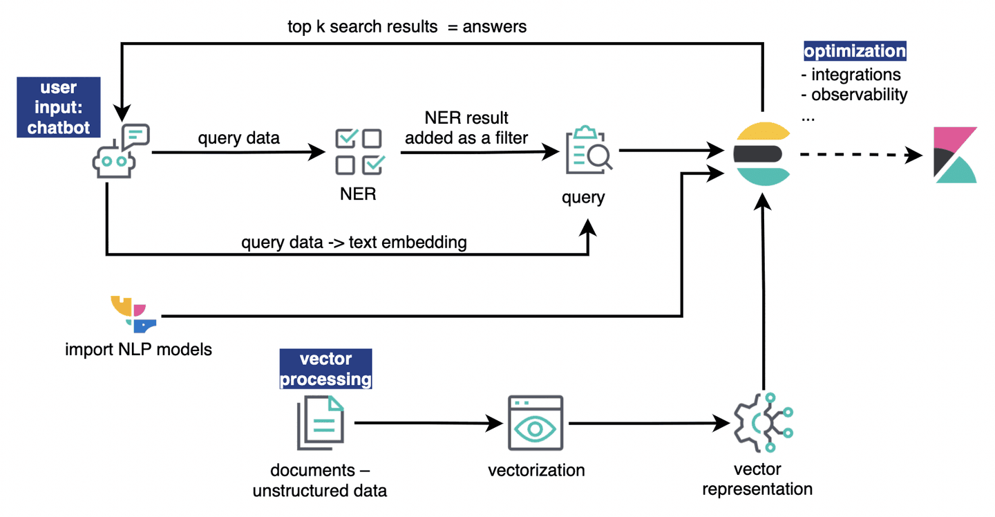 By incorporating NLP and native vector search in Elasticsearch, you can take advantage of its speed, scalability, and search capabilities to create highly efficient and effective chatbots capable of handling large amounts of data, whether structured or unstructured.