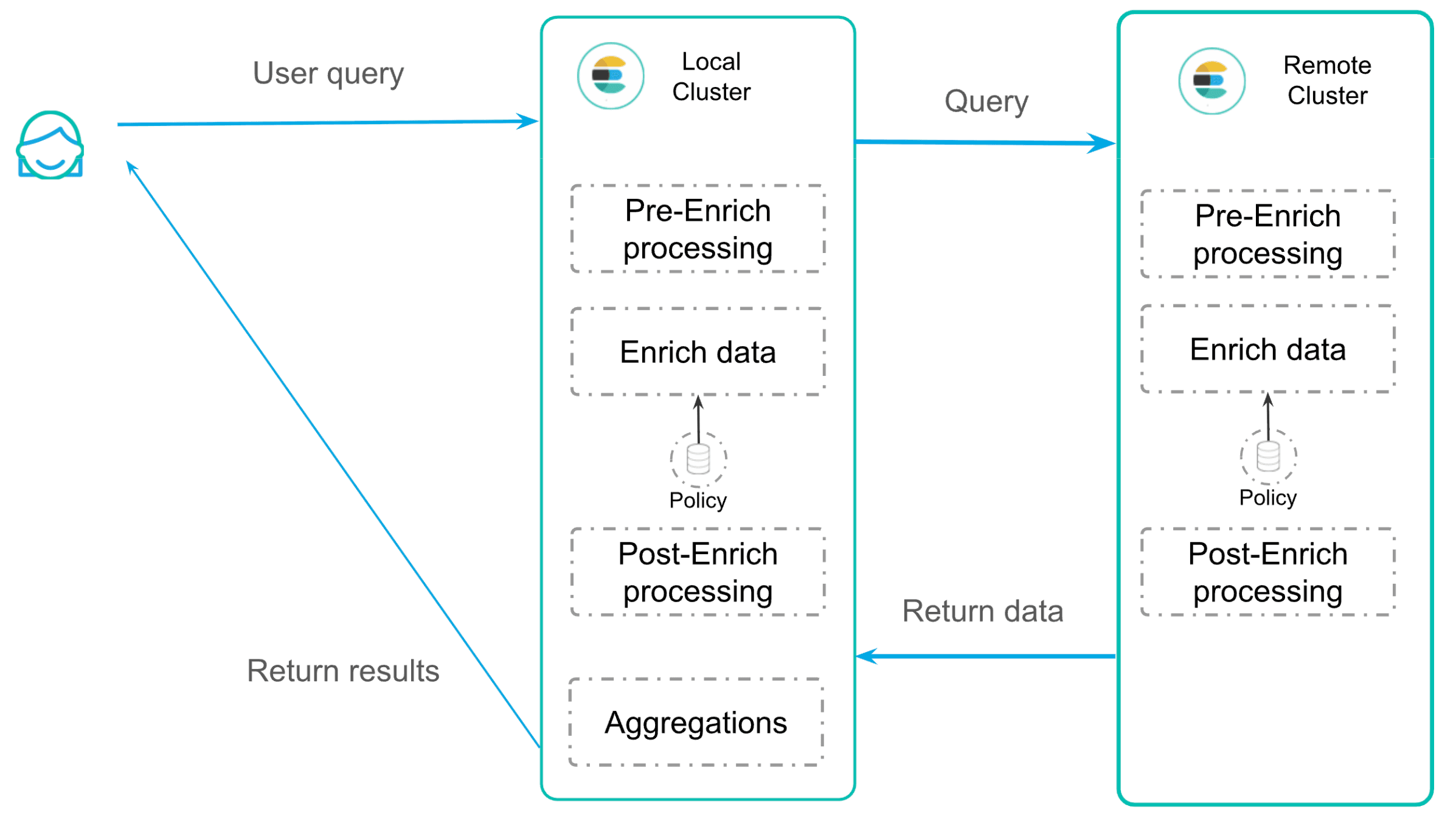 ES|QL ENRICH command allows adding data from an enrichment policy to the query result. This capability is available across clusters, supporting three modes.