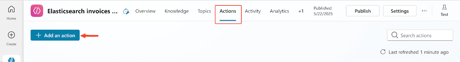 An action is an API endpoint. For this example, you need to add two: one for the semantic text queries and another one for date based queries.