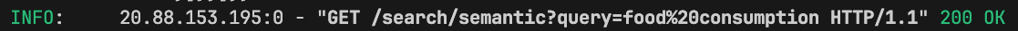 In the API logs, we can verify the called endpoint and the query generated by Copilot. In this case, it was “food consumption.”