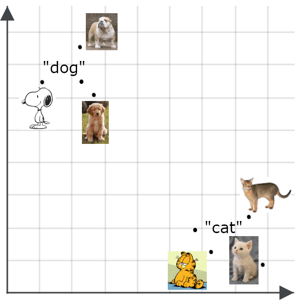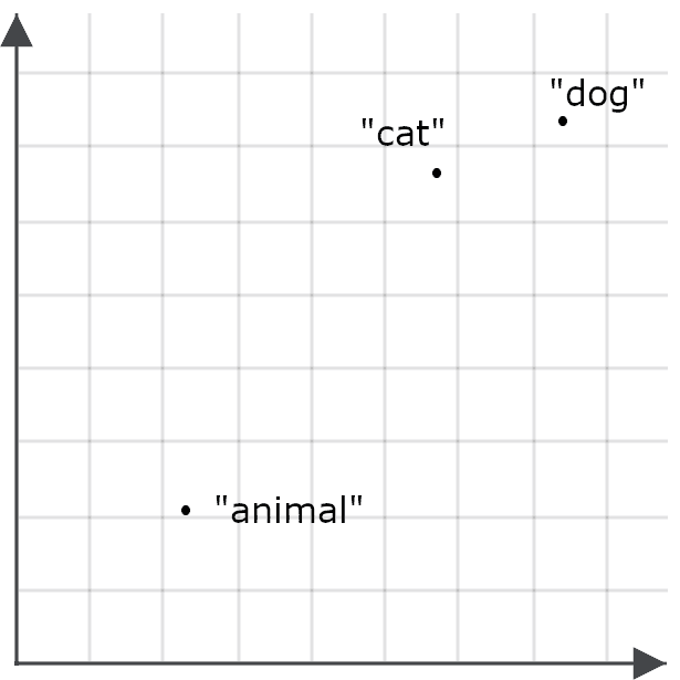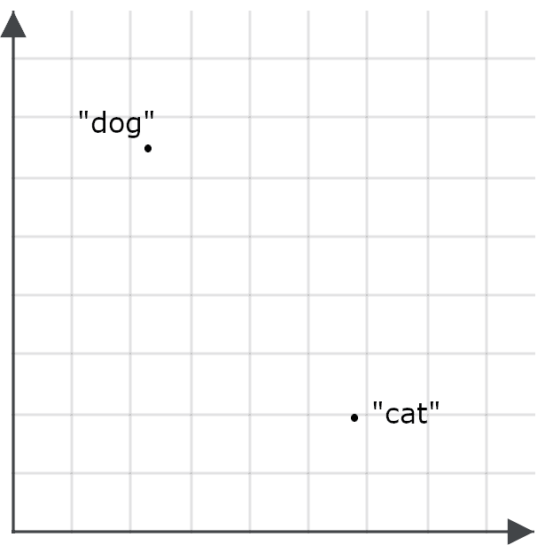 To understand how this is important for search applications, imagine one embedding for the word “dog” and one for the word “cat” as points in space: