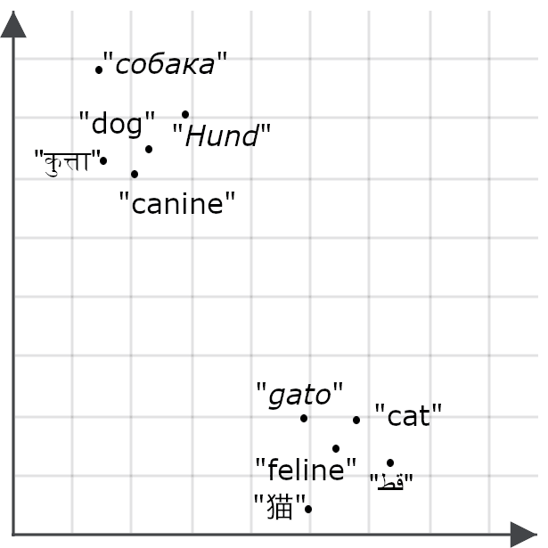 If a model is multilingual, we would expect the same thing for translations of “cat” and “dog”: