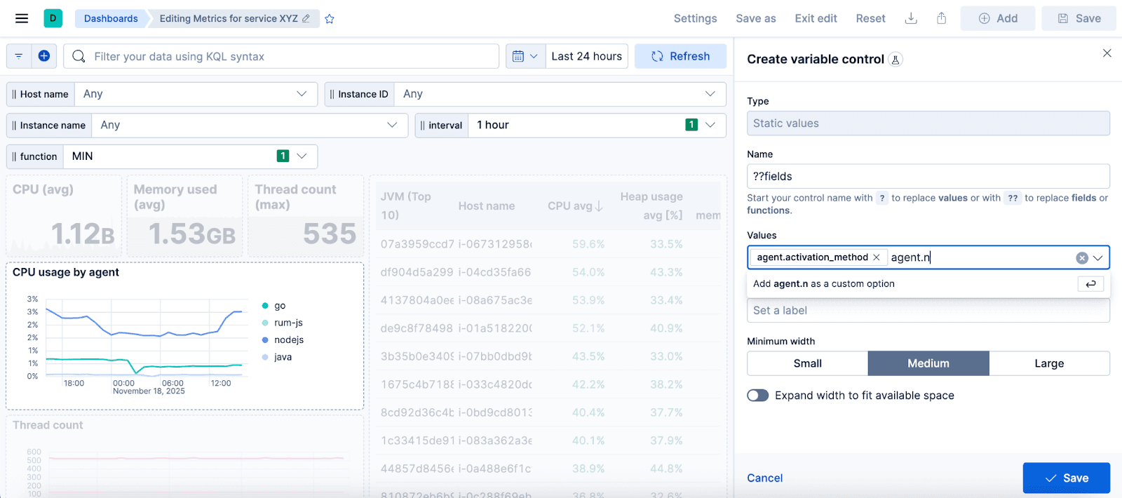 We’re excited to share that variable controls are now available in Kibana dashboards starting from version 8.18 and all the 9.x series! This feature has been one of the most consistently requested additions from dashboard users—and it’s finally here 🎉 Over the past few months, we’ve continued expanding and refining variable controls, making it the perfect moment to give them their own dedicated blog post.