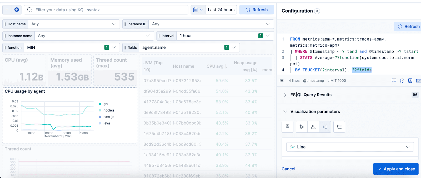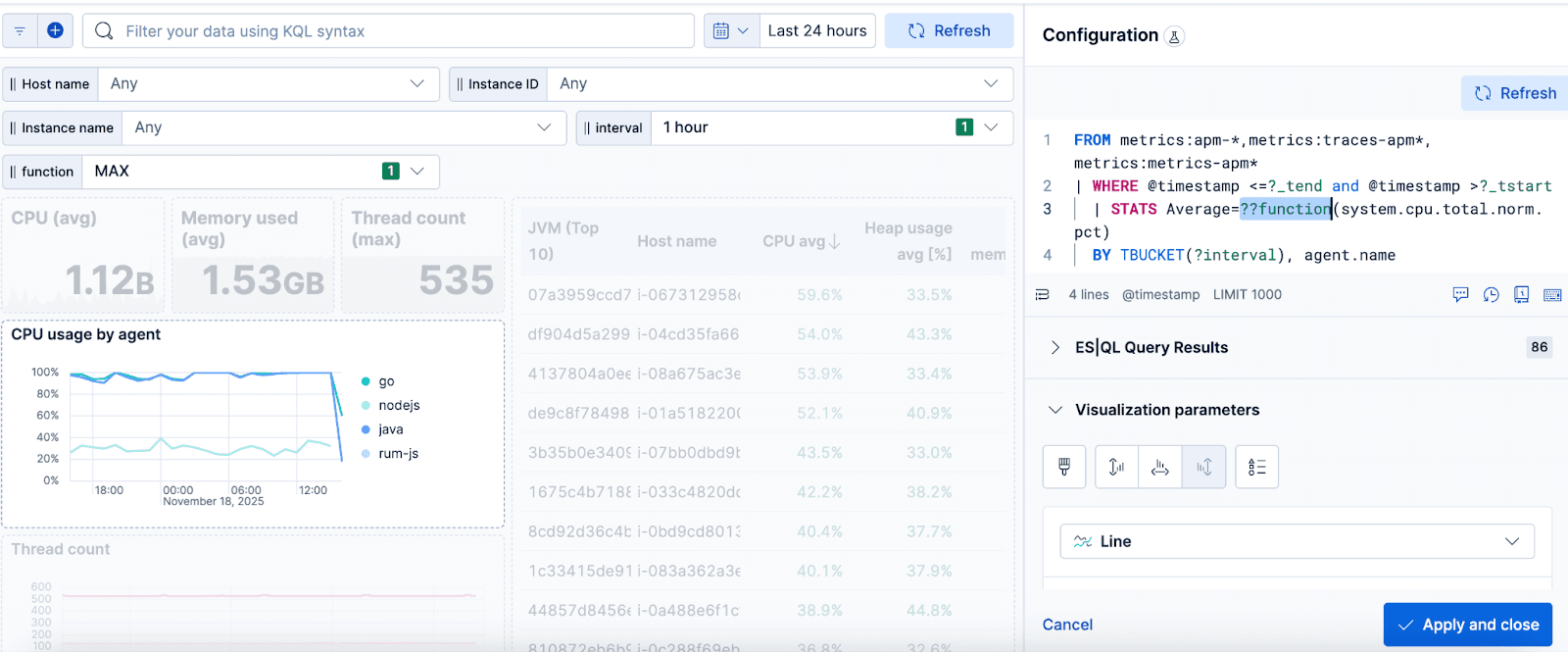 By now, you’ve probably noticed that variable controls come with a few rules—like which parts of a query they can reference and the naming prefixes you need to use (“?...” for values and “??...” for fields or functions). That’s because variables aren’t just simple string replacements happening on the client. They’re actually first-class citizens in the query language itself (known as parameters in ES|QL).