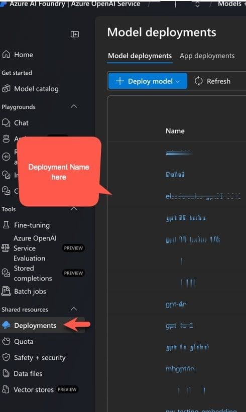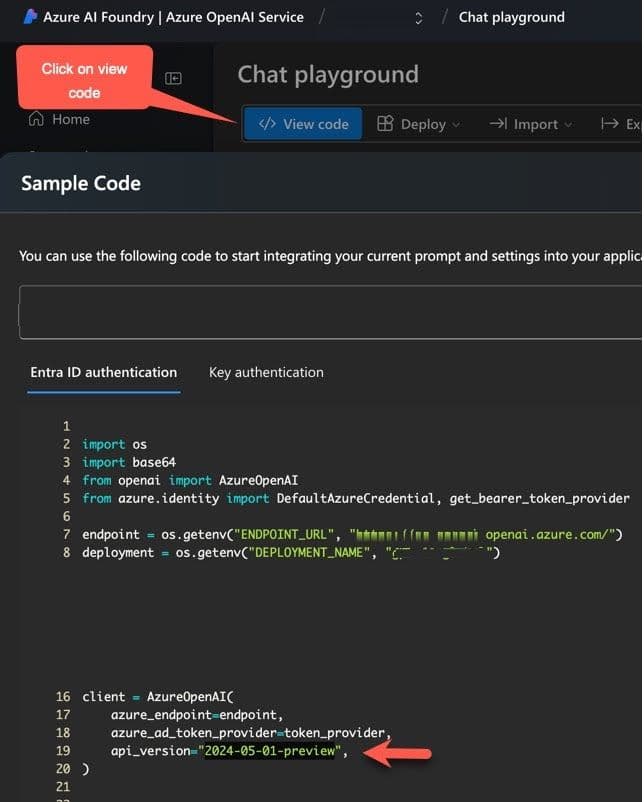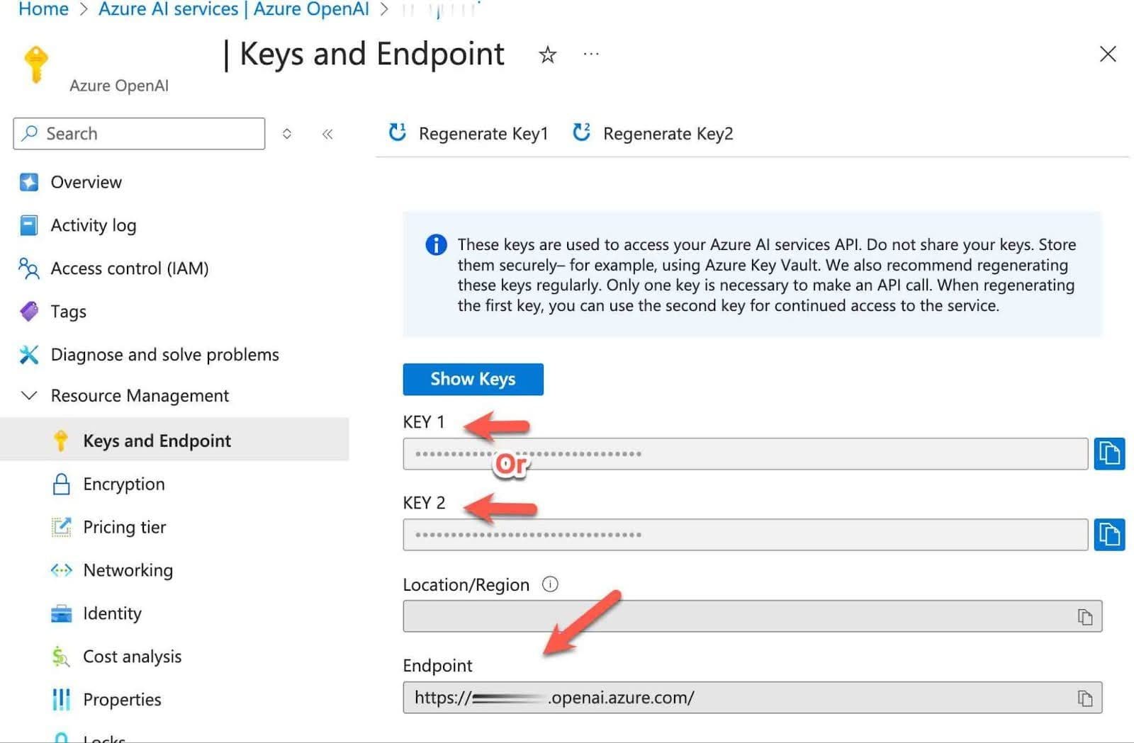 The notebook uses an Azure OpenAI completions model and to run it, you will need the Azure OpenAI Key (either Key 1 or Key 2), Endpoint, Deployment Name, and Version number. All this information can be found under Azure OpenAI → Keys and Endpoint.