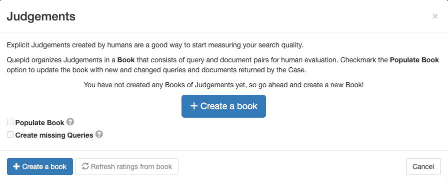 A Book in Quepid allows multiple raters to evaluate query/document pairs systematically. To create one: