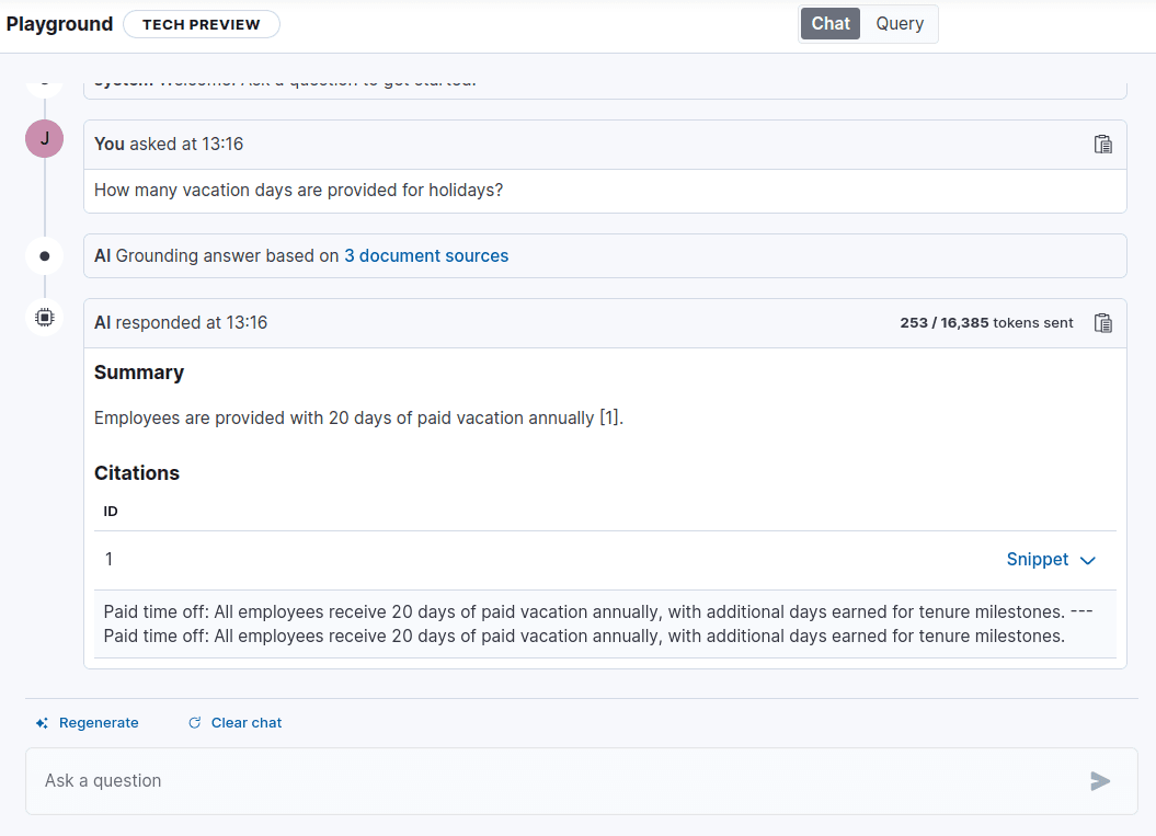 Note: By clicking on "Snippet", we can see the specific content in Elasticsearch from where the answer comes.